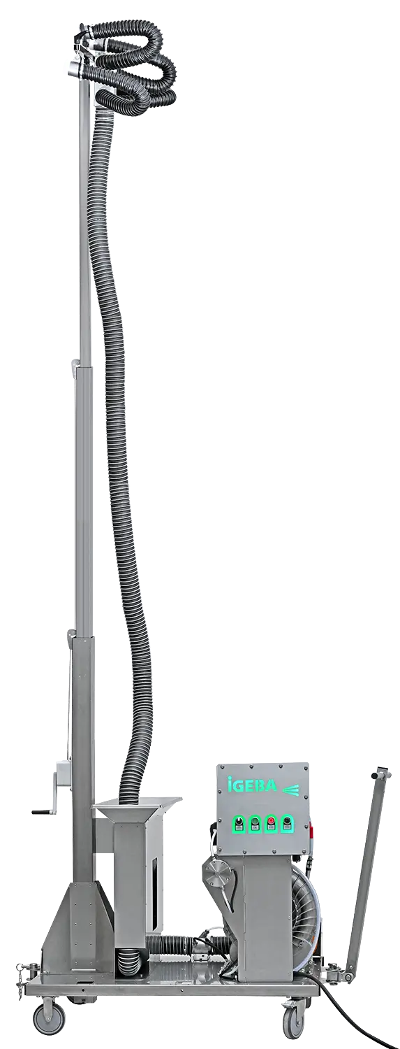 Mit seinem stufenlos einstellbaren Teleskopmast können die Sprühköpfe des Unipro 40-T auf eine Höhe von bis zu 4,3 m ausgefahren werden. Das Hochleistungs-Kaltnebelgerät ist ein Alleskönner und vermag Hallen und Gewächshäuser bis 120 m problemlos zu behandeln.